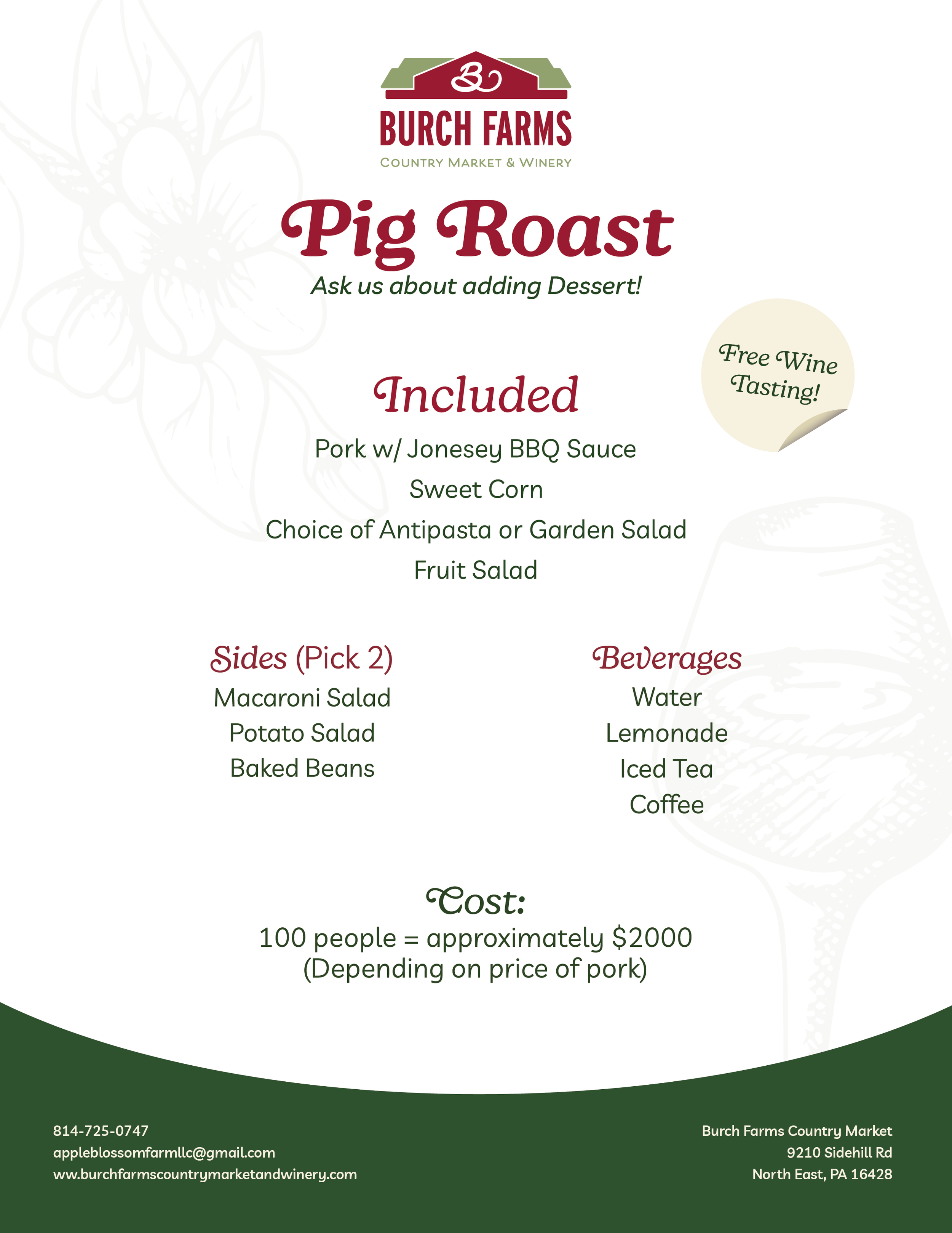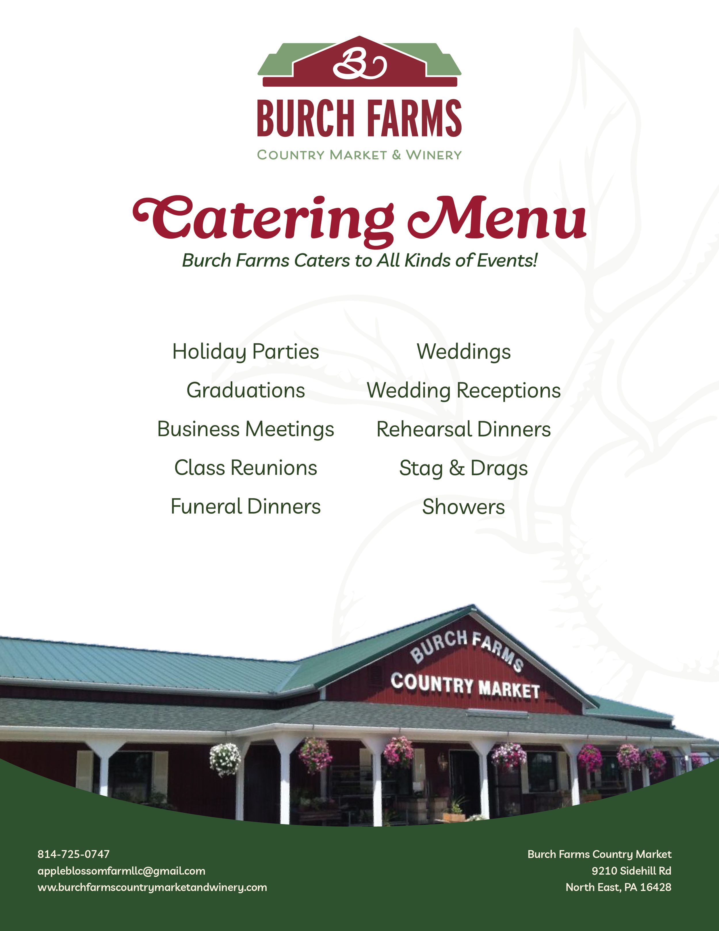 I worked on creating the logo and catering menu for Burch Farms Country Market & Winery during my Spring 2025 Practicum class where I worked as the production lead. The Burch Farms brand valued their long family history and values so for my concept I used a tree with apples. The tree represents a family tree and symbolizes Burch Farms long family history. The apples represent Burch Farms physical location and their orchard. For the menus, the team wanted a friendly and inviting feeling menu so we chose softer colors and light illustrations. We also used a nice clear photo of the Burch Farms market building.